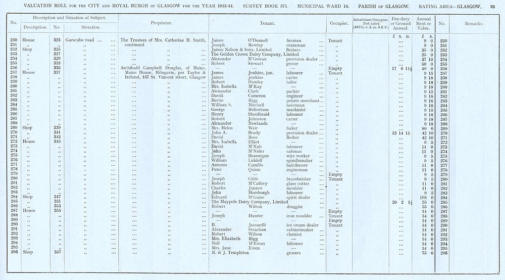Glasgow Valuation Roll VR 1913-14, Ward 16, p093