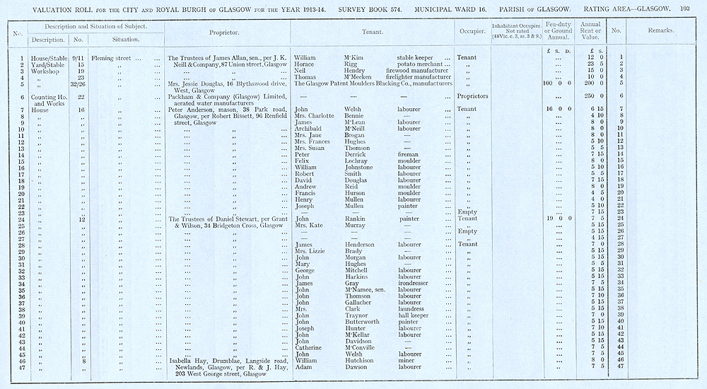 Glasgow Valuation Roll VR 1913-14, Ward 16, p103
