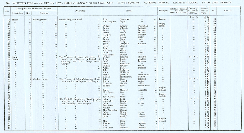 Glasgow Valuation Roll VR 1913-14, Ward 16, p104
