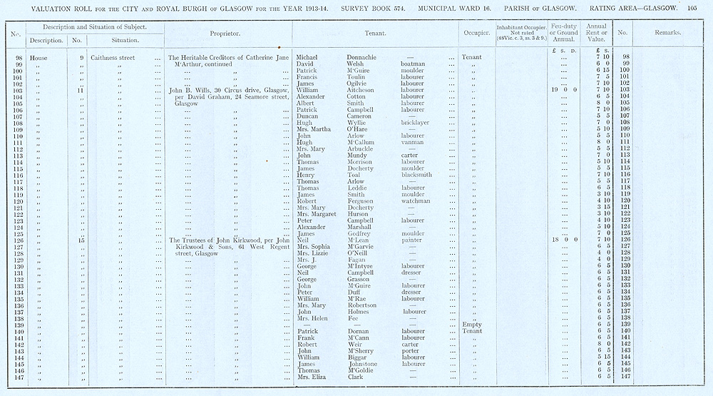 Glasgow Valuation Roll VR 1913-14, Ward 16, p105