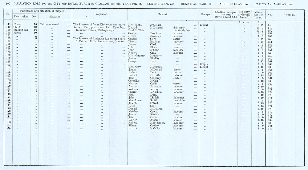 Glasgow Valuation Roll VR 1913-14, Ward 16, p106