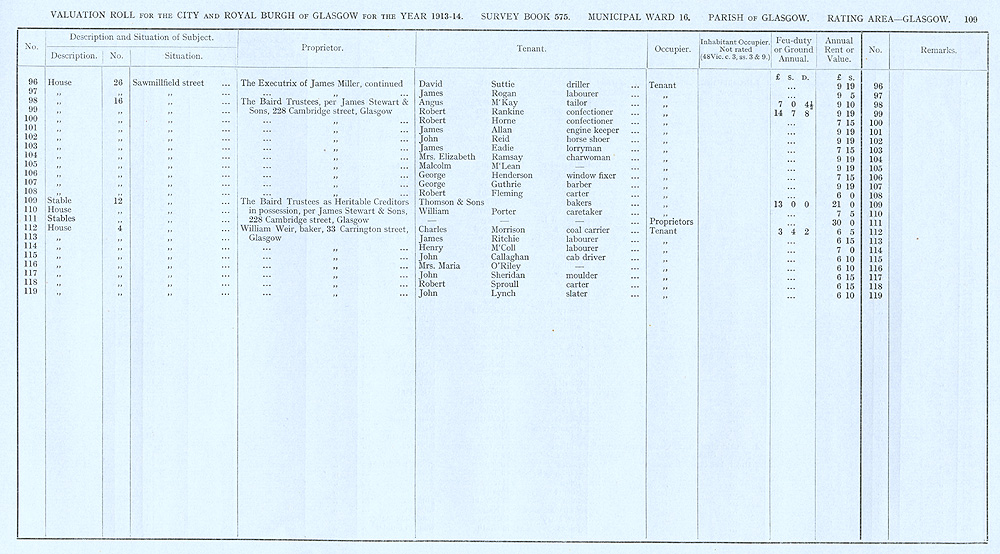 Glasgow Valuation Roll VR 1913-14, Ward 16, p109
