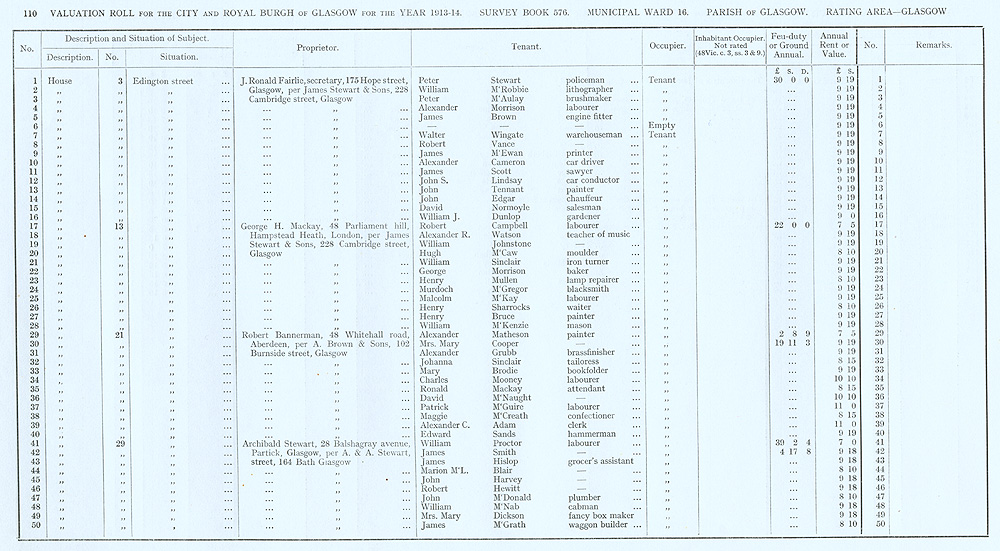 Glasgow Valuation Roll VR 1913-14, Ward 16, p110