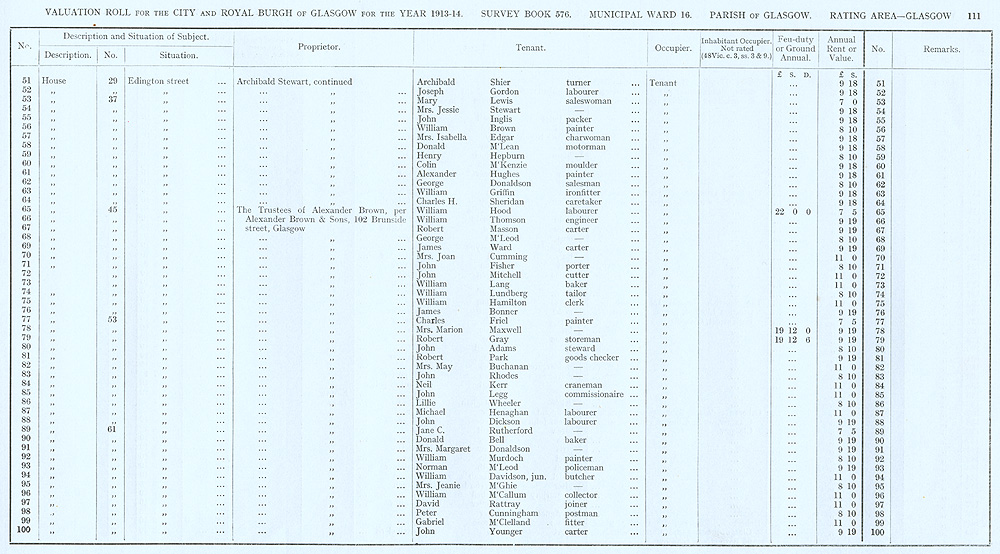 Glasgow Valuation Roll VR 1913-14, Ward 16, p111
