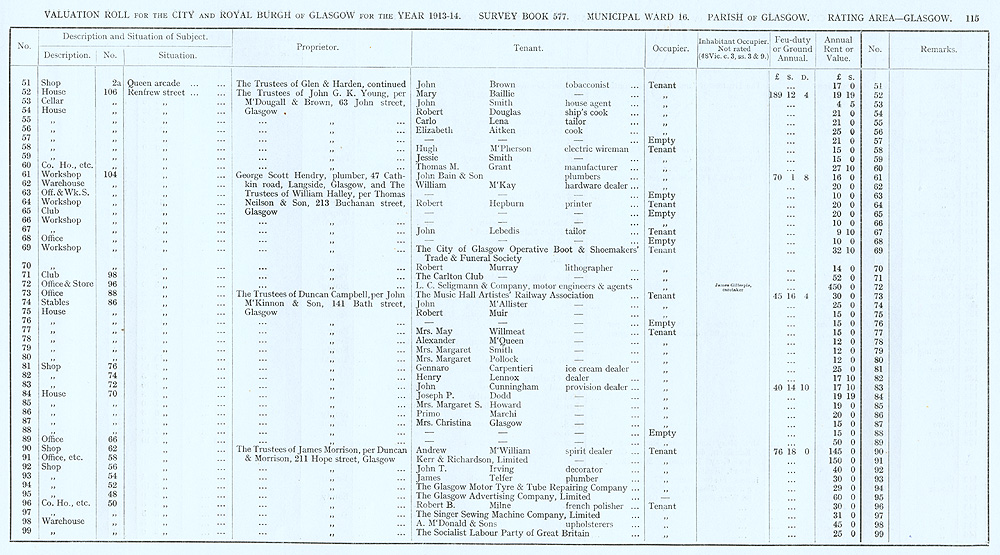 Glasgow Valuation Roll VR 1913-14, Ward 16, p115