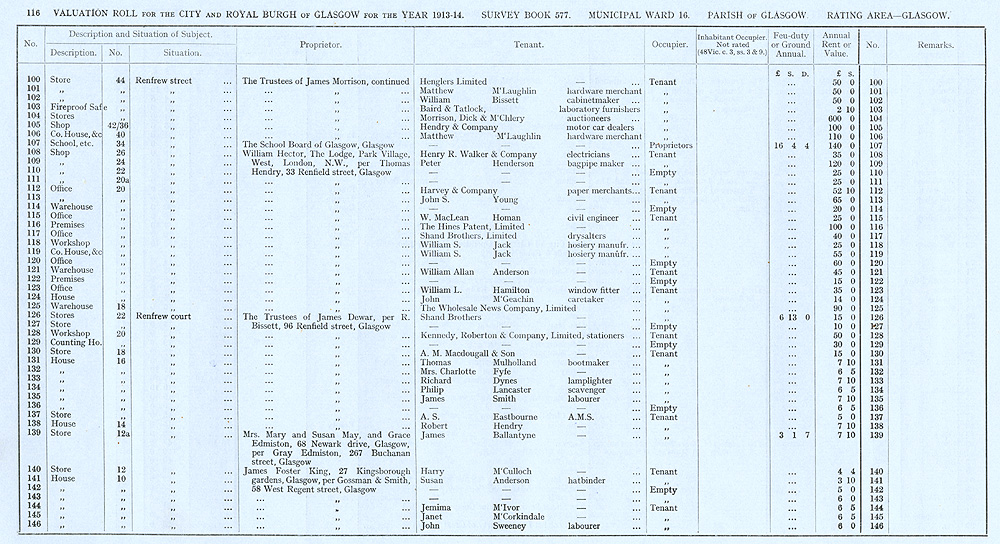 Glasgow Valuation Roll VR 1913-14, Ward 16, p116