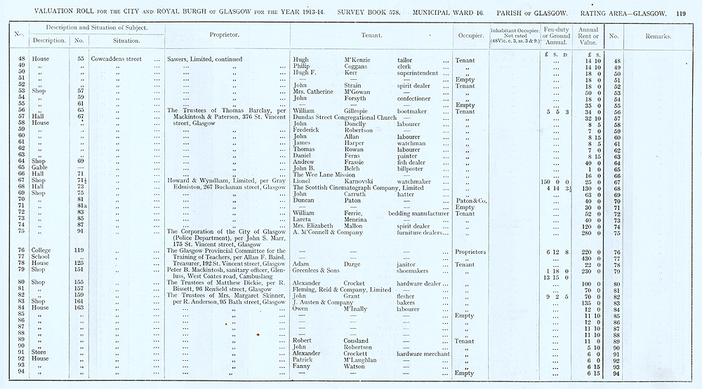 Glasgow Valuation Roll VR 1913-14, Ward 16, p119