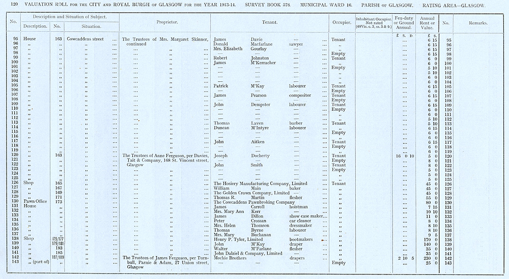 Glasgow Valuation Roll VR 1913-14, Ward 16, p120
