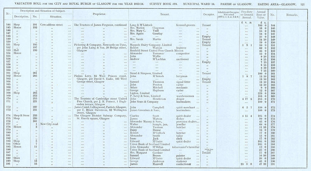 Glasgow Valuation Roll VR 1913-14, Ward 16, p121