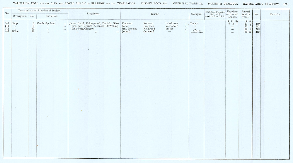 Glasgow Valuation Roll VR 1913-14, Ward 16, p123