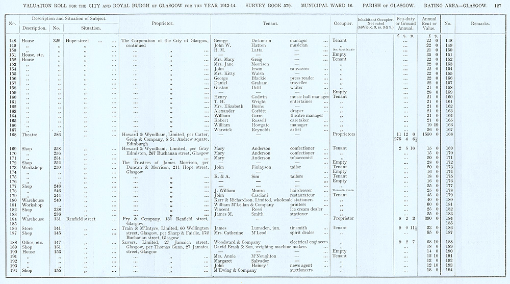 Glasgow Valuation Roll VR 1913-14, Ward 16, p127