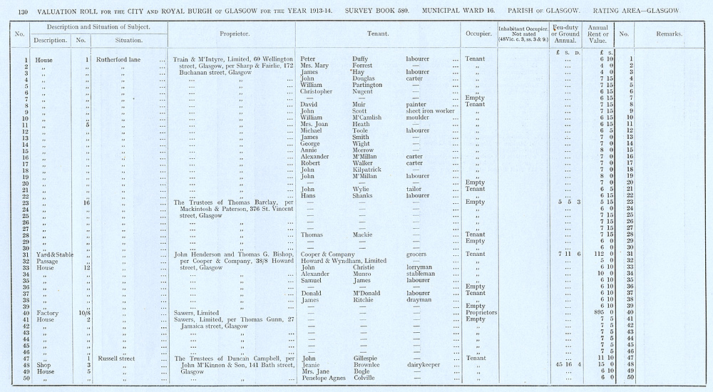 Glasgow Valuation Roll VR 1913-14, Ward 16, p130