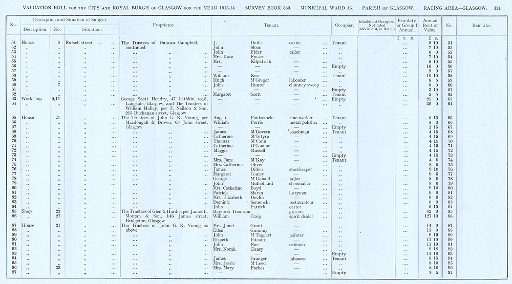 Glasgow Valuation Roll VR 1913-14, Ward 16, p131
