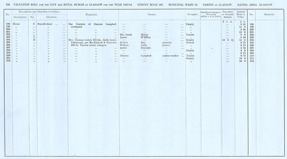 Glasgow Valuation Roll VR 1913-14, Ward 16, p134
