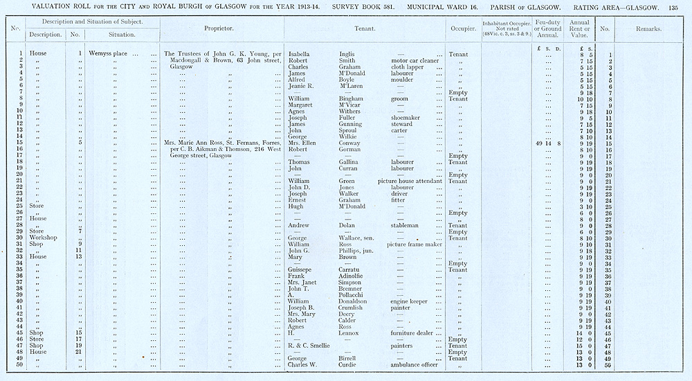 Glasgow Valuation Roll VR 1913-14, Ward 16, p135