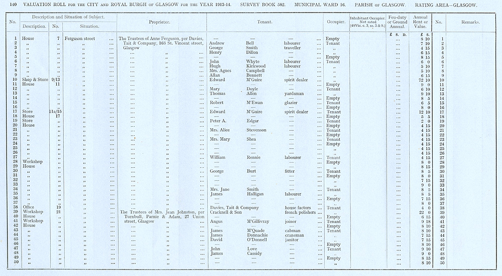 Glasgow Valuation Roll VR 1913-14, Ward 16, p140