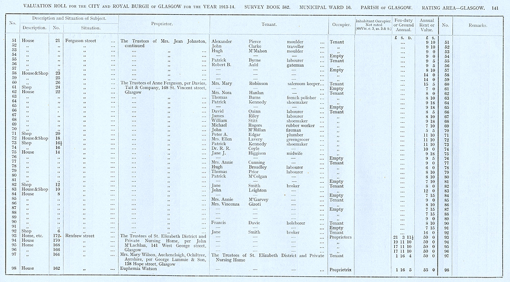 Glasgow Valuation Roll VR 1913-14, Ward 16, p141