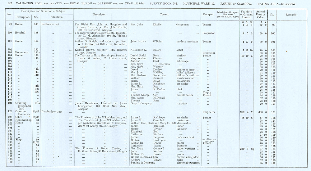 Glasgow Valuation Roll VR 1913-14, Ward 16, p142