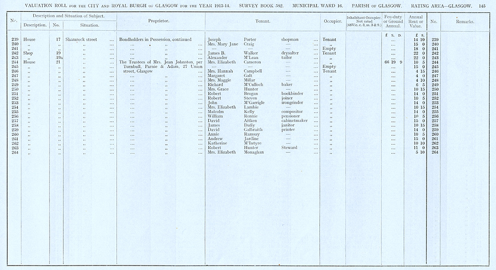 Glasgow Valuation Roll VR 1913-14, Ward 16, p145