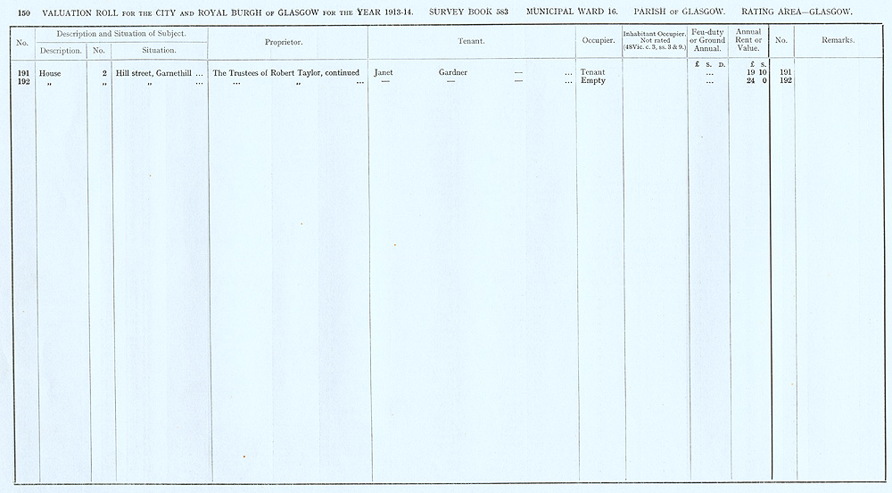 Glasgow Valuation Roll VR 1913-14, Ward 16, p150
