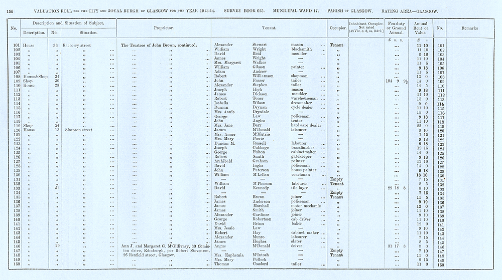 Glasgow Valuation Roll VR 1913-14, Ward 17, p154