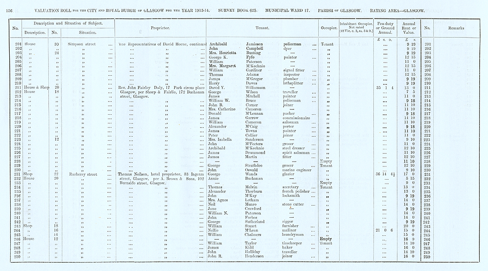 Glasgow Valuation Roll VR 1913-14, Ward 17, p156