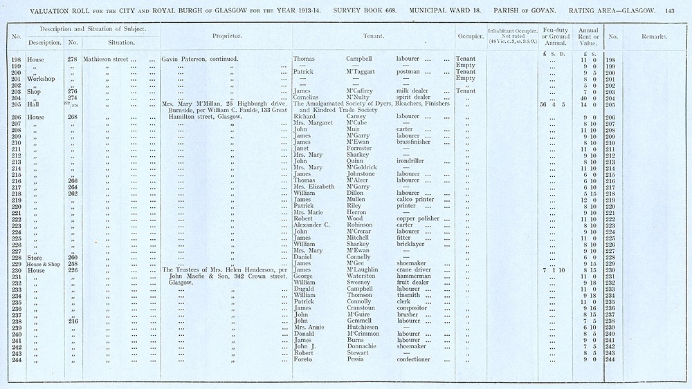 Glasgow Valuation Roll VR 1913-14, Ward 18, p143