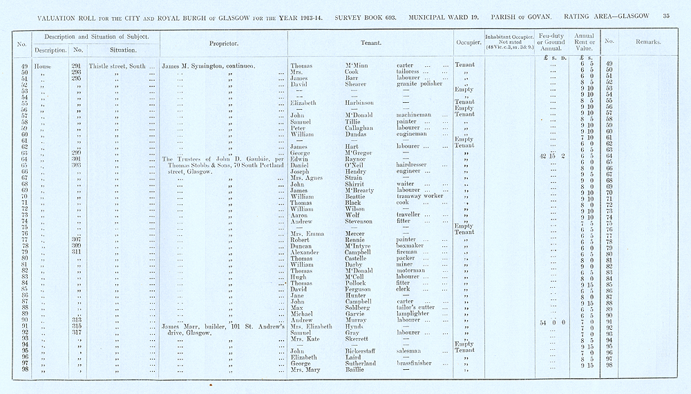 Glasgow Valuation Roll VR 1913-14, Ward 19, p035