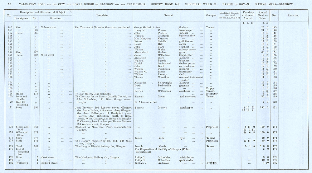 Glasgow Valuation Roll VR 1913-14, Ward 20, p072