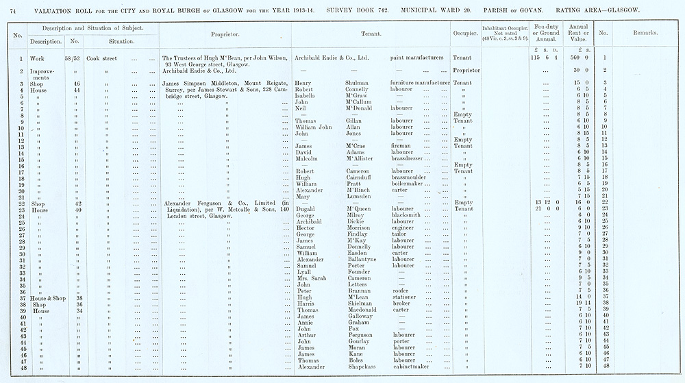 Glasgow Valuation Roll VR 1913-14, Ward 20, p074