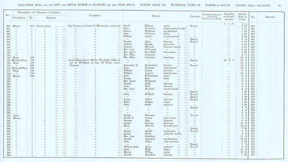 Glasgow Valuation Roll VR 1913-14, Ward 20, p087