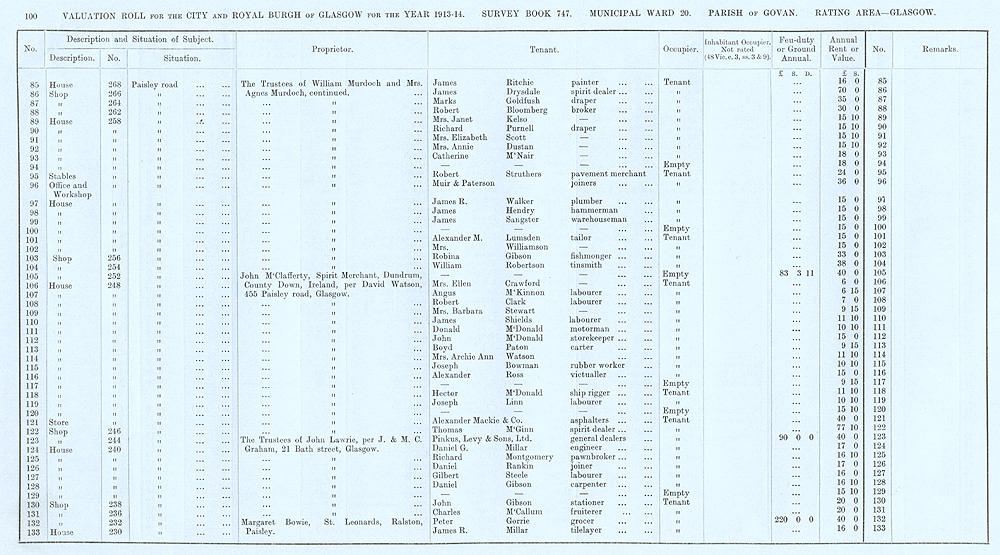 Glasgow Valuation Roll VR 1913-14, Ward 20, p100