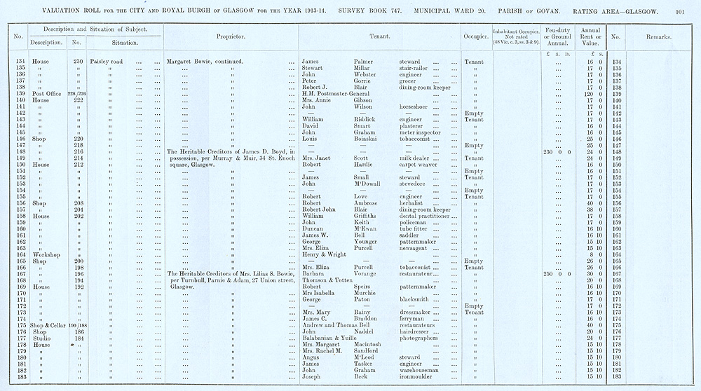 Glasgow Valuation Roll VR 1913-14, Ward 20, p101