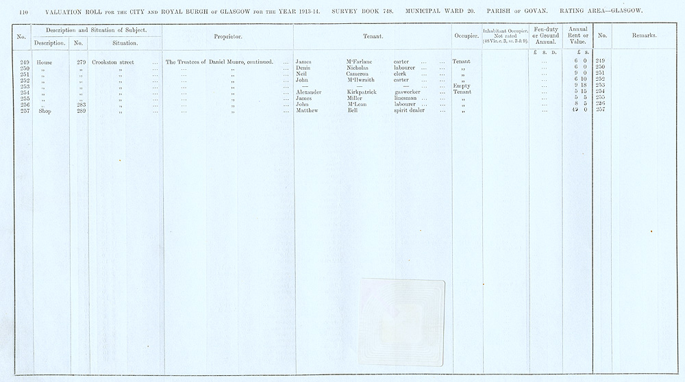 Glasgow Valuation Roll VR 1913-14, Ward 20, p110
