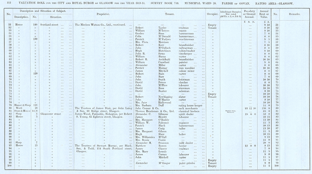 Glasgow Valuation Roll VR 1913-14, Ward 20, p112