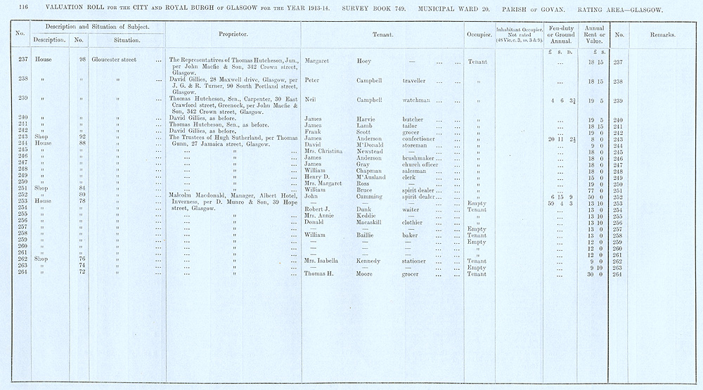 Glasgow Valuation Roll VR 1913-14, Ward 20, p116