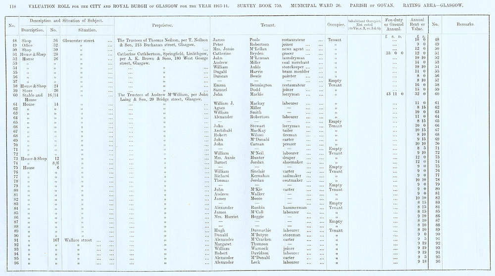 Glasgow Valuation Roll VR 1913-14, Ward 20, p118