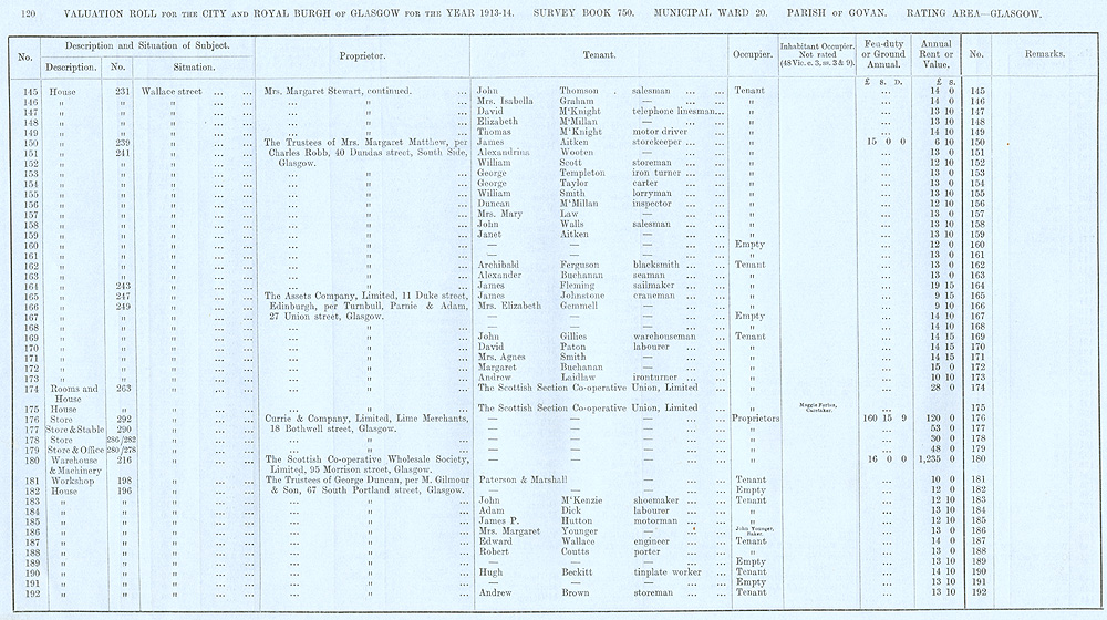 Glasgow Valuation Roll VR 1913-14, Ward 20, p120