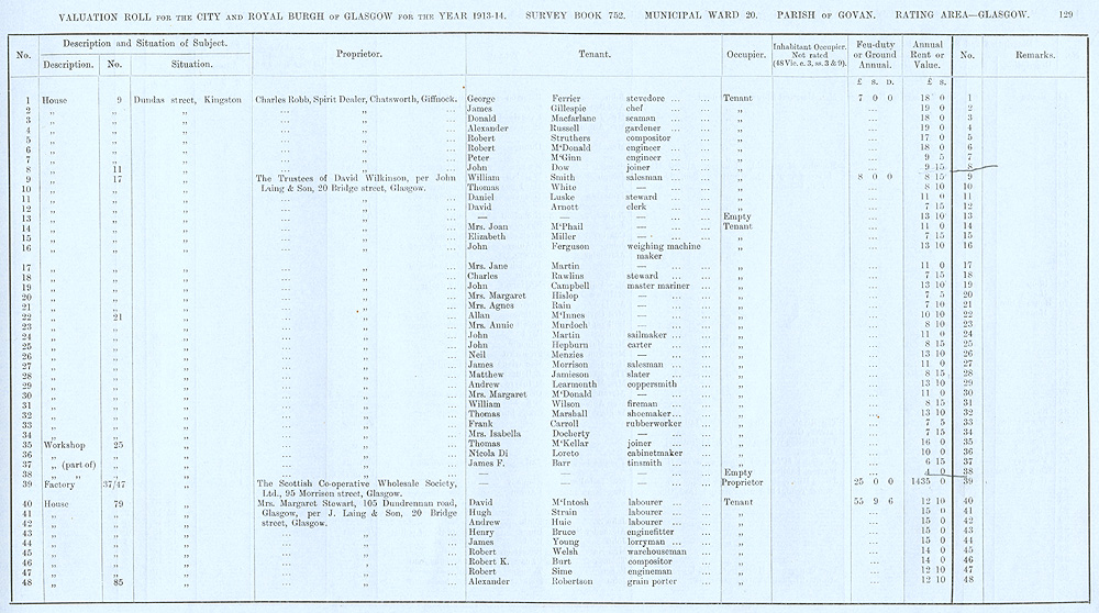 Glasgow Valuation Roll VR 1913-14, Ward 20, p129