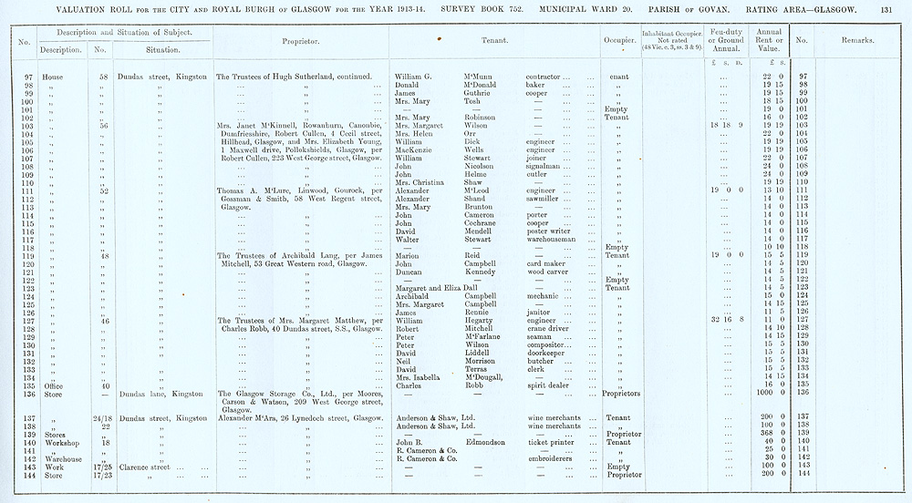 Glasgow Valuation Roll VR 1913-14, Ward 20, p131