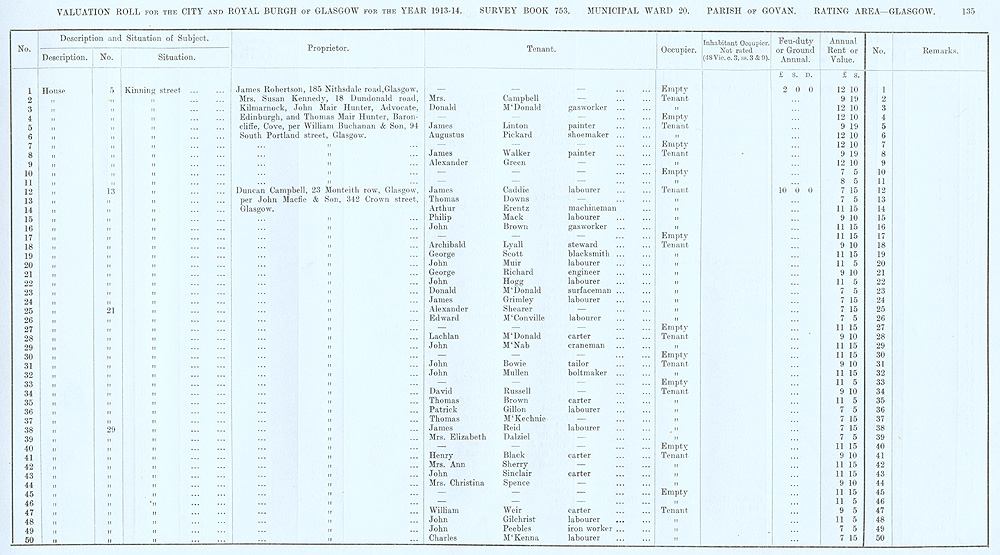 Glasgow Valuation Roll VR 1913-14, Ward 20, p135