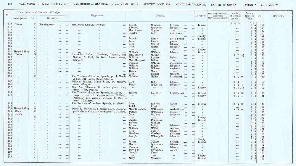 Glasgow Valuation Roll VR 1913-14, Ward 20, p138