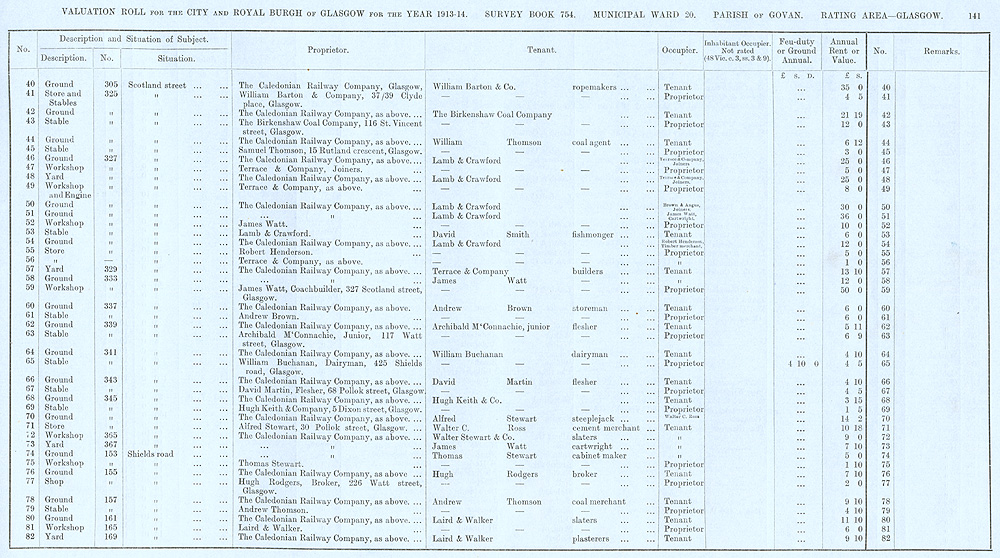 Glasgow Valuation Roll VR 1913-14, Ward 20, p141