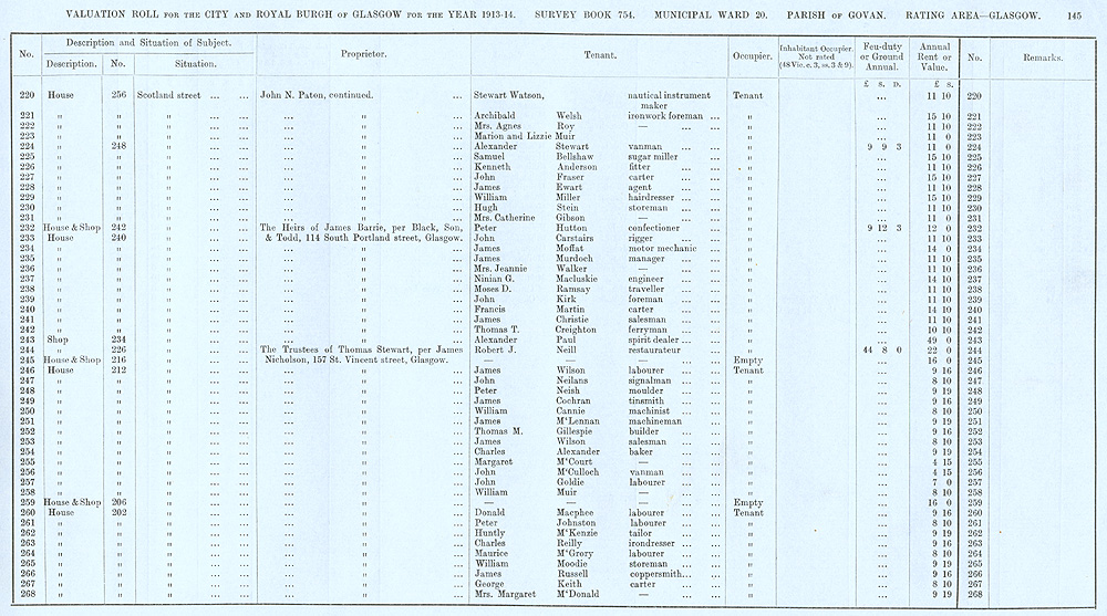 Glasgow Valuation Roll VR 1913-14, Ward 20, p145
