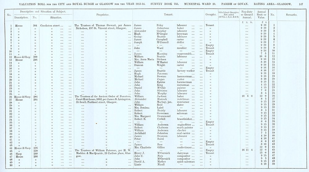 Glasgow Valuation Roll VR 1913-14, Ward 20, p147