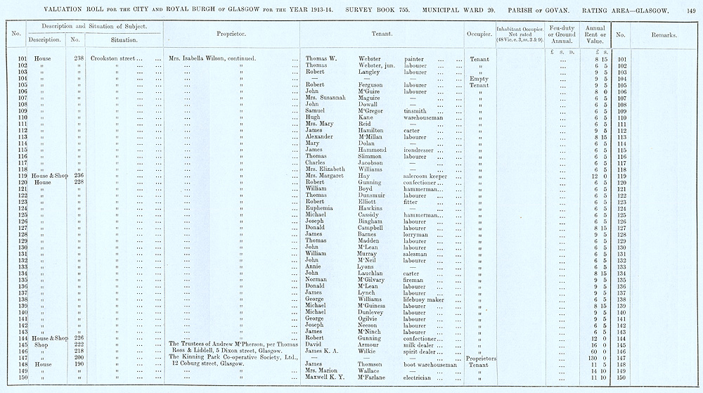 Glasgow Valuation Roll VR 1913-14, Ward 20, p149