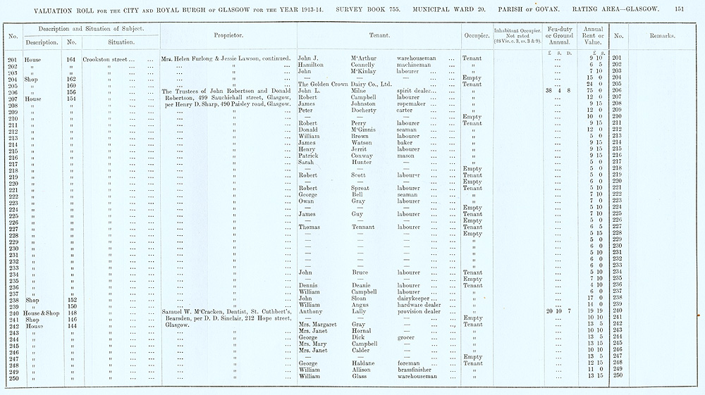 Glasgow Valuation Roll VR 1913-14, Ward 20, p151