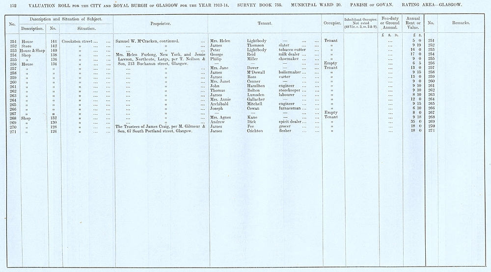 Glasgow Valuation Roll VR 1913-14, Ward 20, p152