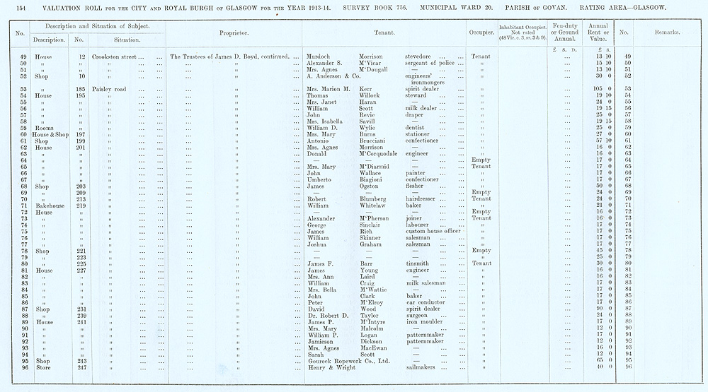Glasgow Valuation Roll VR 1913-14, Ward 20, p154