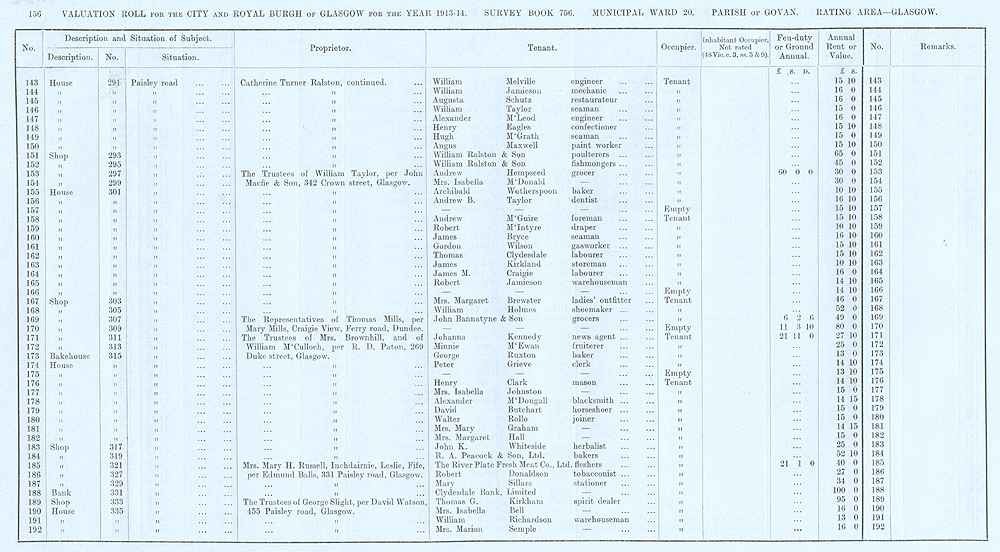 Glasgow Valuation Roll VR 1913-14, Ward 20, p156